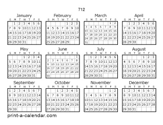 A one page calendar. All 12 months of 712 on a single page.