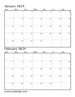 Two months per page with one on top of the other.