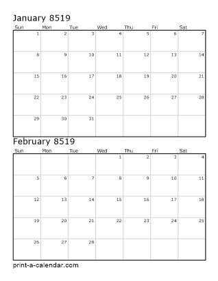 Two months per page with one on top of the other.
